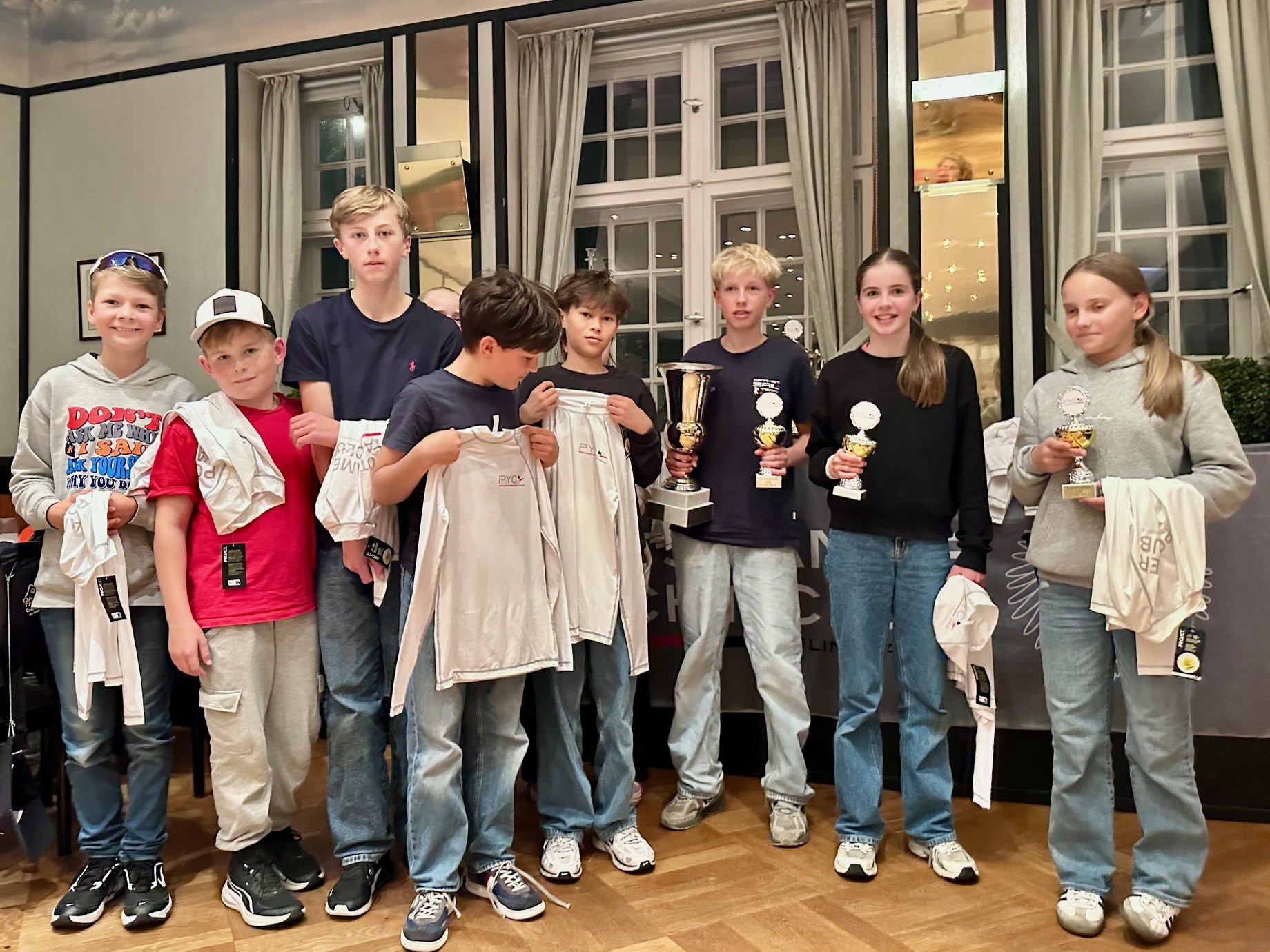 Nach dem sportlichen Teil ging es zum gemeinsamen Pasta-Essen hoch in die Gastronomie, wo sich auch viele Eltern eingefunden hatten. Bei der anschließenden Preisverleihung und Ehrung der Kinder, die in die nächsten Bootsklasse umsteigen, gab es neben Pokalen auch ein besonderes Highlight: alle Teilnehmenden erhielten das lange ersehntes UV-Shirt im PYC-Design.