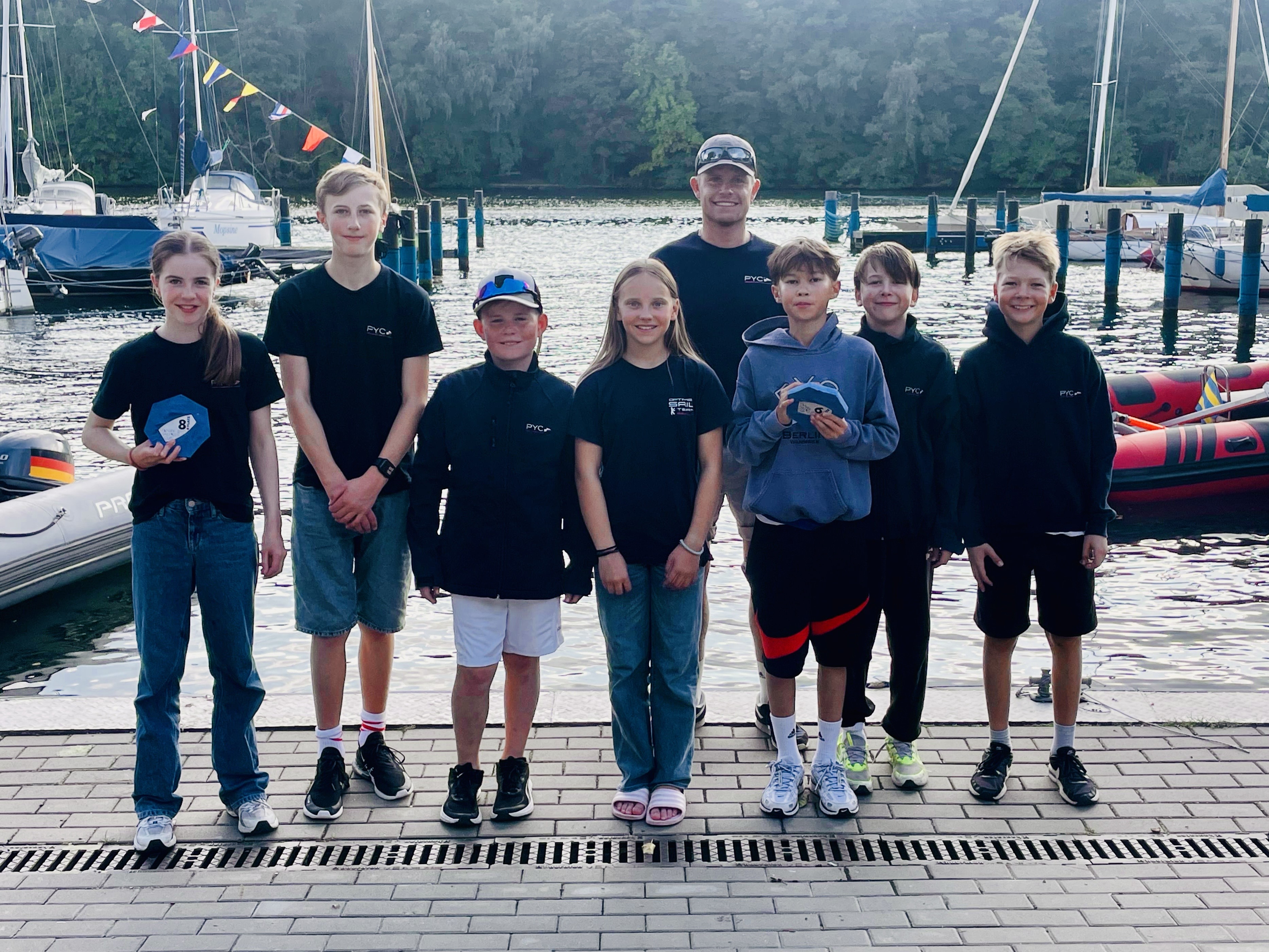 Am Sontag um 11 Uhr ging es mit dem Start los. Wir starteten ein Rennen was kurz darauf abgebrochen wurde wegen zu starken und nicht vorhersehbaren Drehern. Nach kurzer Startverschiebung und umgelegten Tonnen schafften wir zwei faire Rennen. Im Hafen angekommen, ging’s ans Verladen. Zum Schluss war noch Siegerehrung mit Preisen für die ersten 20 Plätze. Drei von sechs Wettfahrten gewann der PYC. Auch im gesamten Ergebnis waren drei vom PYC unter den Top 15 (mit Lucas und Hannah sogar unter den Top 10 ) und in der U13 Wertung belegt Lucas Platz 1. Insgesamt war das Wochenende für den PYC ein großer Erfolg.